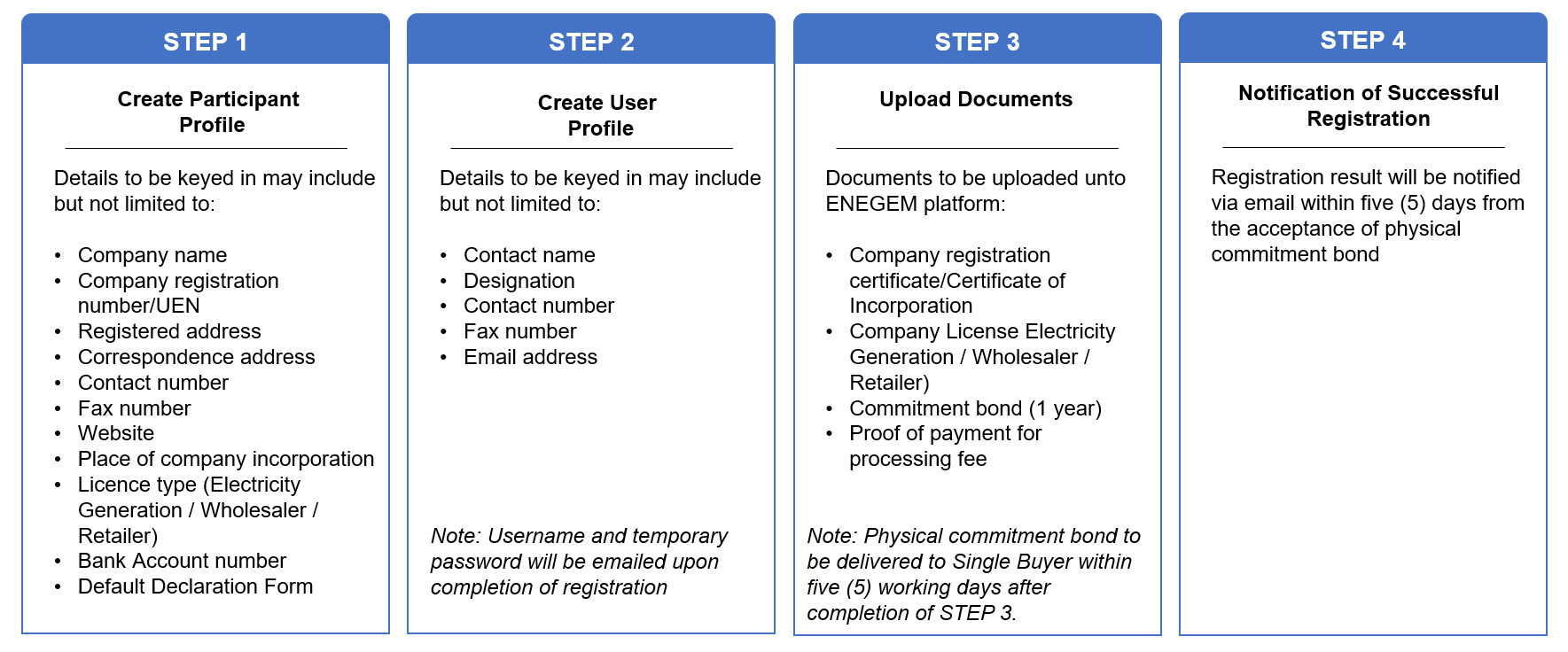 To participate in the auction, interested parties must be registered as ENEGEM participants. The registration process is as summarised in Diagram 2. For more comprehensive information regarding registration rules and requirements, please refer to the Invitation to Bid (ITB) document.